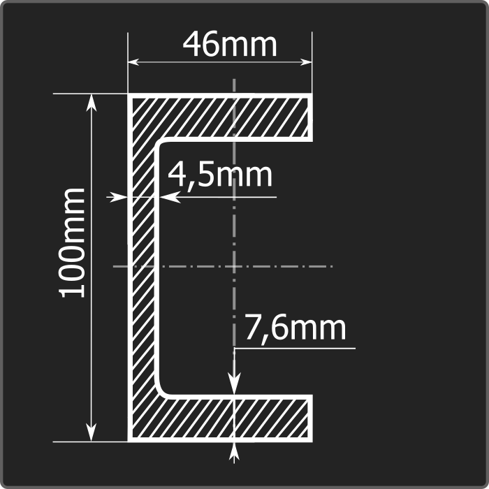 Швеллер стальной горячекатаный с параллельными гранями полок 10П и длиной 12м. Материал - углеродистая сталь. Соответствует требованиям ГОСТ 535-2005.
