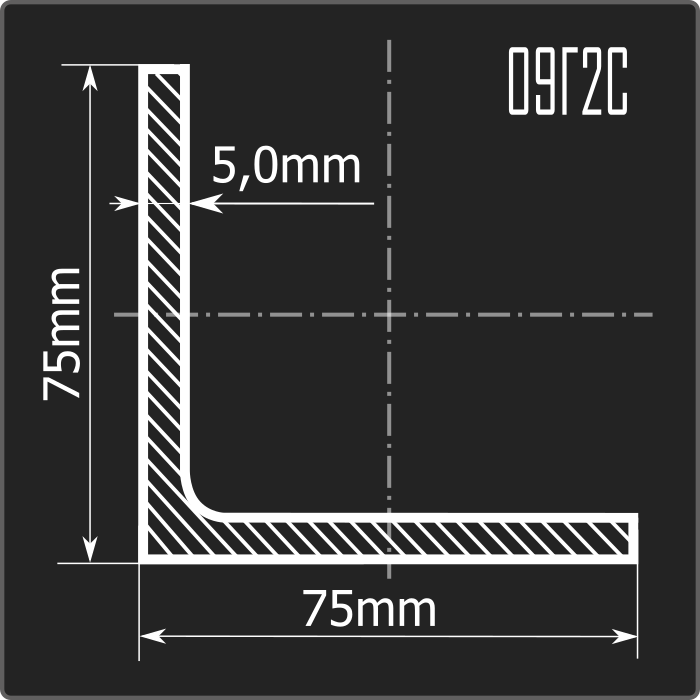 Угол 75*75*5,0 09Г2С 12м ГОСТ 19281-2014/ГОСТ 8509-93