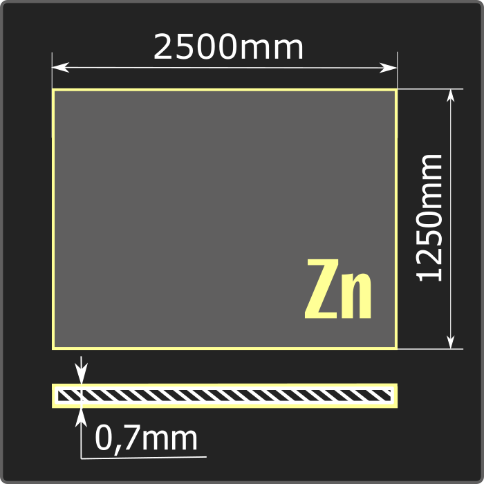 Лист стальной оцинкованный толщиной 0,7мм, шириной 1250мм и длиной 2500мм. Сталь 08пс. Соответствует требованиям ГОСТ 14918-2020.