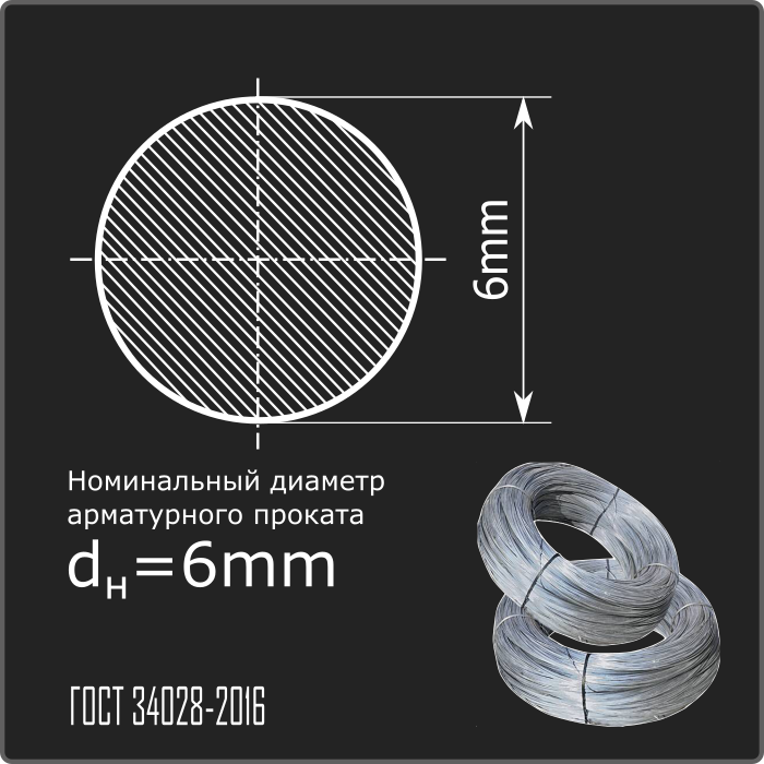 Арматурный прокат горячекатаный в мотках гладкого профиля номинального диаметра dн 6,0мм класса А240. Соответствует требованиям ГОСТ 34028-2016.
