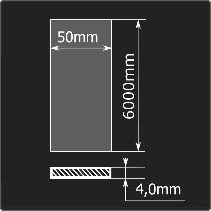Полоса стальная горячекатаная толщиной 4,0мм, шириной 50мм и длиной 6м. Материал - углеродистая сталь. Соответствует требованиям ГОСТ 103-2006.