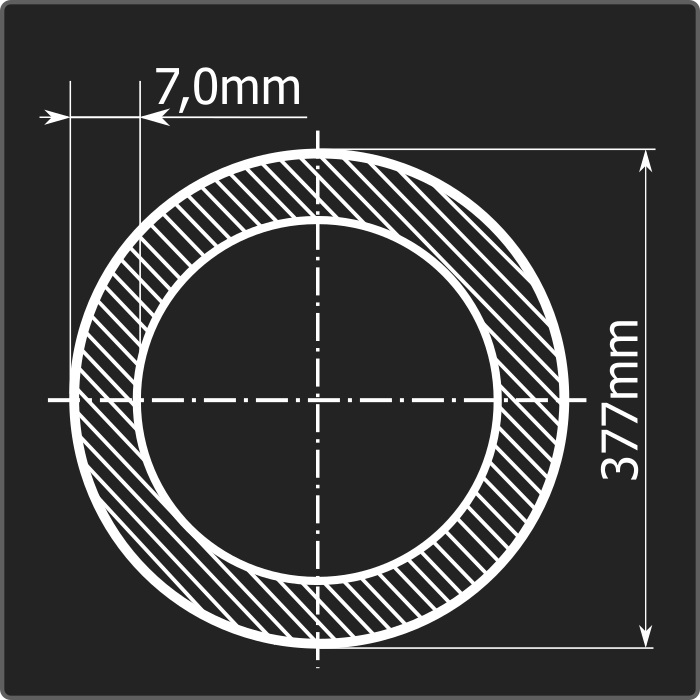 Труба электросварная стальная круглого сечения диаметром 377мм, толщиной 7,0мм и длиной 11-12м. Материал - углеродистая сталь. Соответствует требованиям ГОСТ 10705-80.